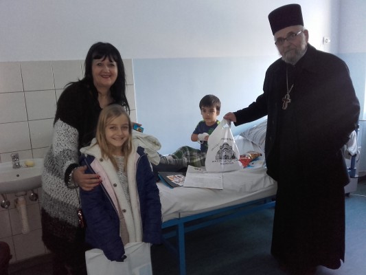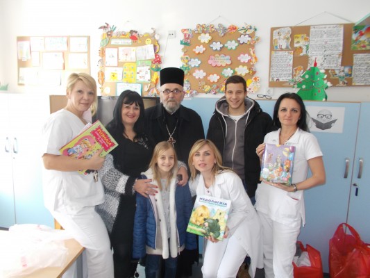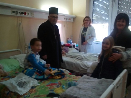 Protojerej stavrofor, otac Petar Lukavac, predsednica naše sindikalne organizacije mr Jasmina Milošević, zaposleni na pedijatriji i roditelji hospitalizovane dece su se potrudili da ljubavlju, pažnjom i nežnošću obraduju male pacijente koji ovaj veliki i značajan praznik provode u bolnici.